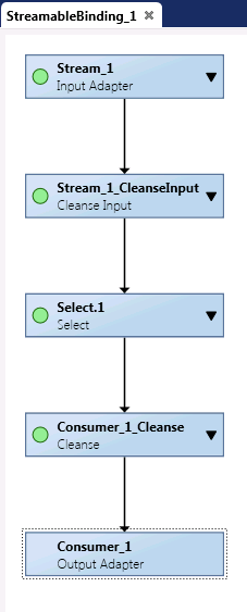6. Under “Applications -> serverApp -> Processes -> ServerProcess -> Queries”, right-click the StreamableBinding_1 query node, and select the “Display Query” command. This will display the query flow chart: