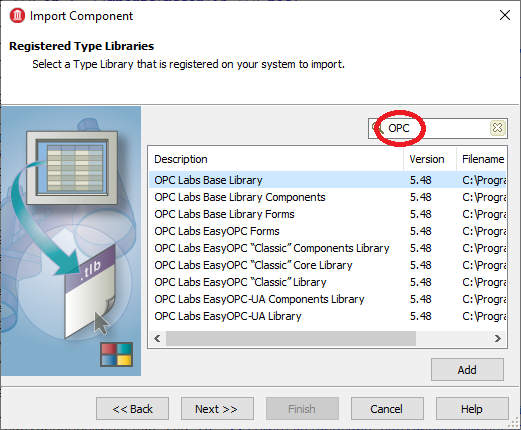 Type OPC into the search box, in order to narrow down the list of available type libraries. Select the type library you want to import, and press the button.