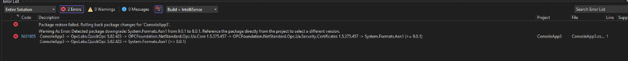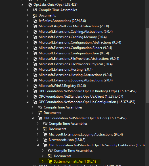 Note that we do not reference this package directly - it is an indirect reference from OPC Foundation UA stack.