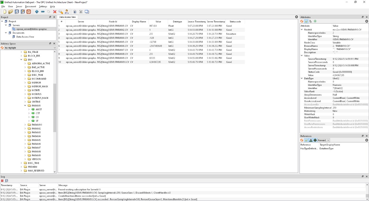Granted, yes the highlighted "UM1" and "EM1" elements are different control modules, but the relevant variables on the parent control modules are the "PARAM1.CV" elements which are both float data type as discussed throughout this chain and shown by UaExpert (see screenshot below)